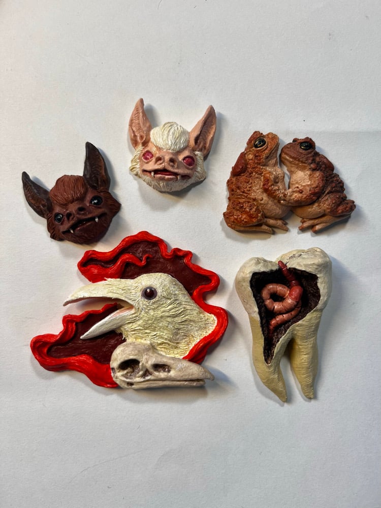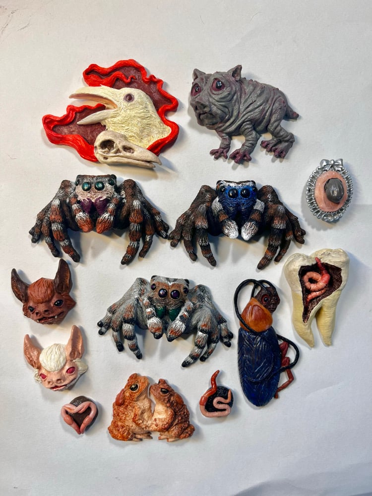 *Magnets on sale: Spiders, Tick, Raven, Cockroach, Bat faces.