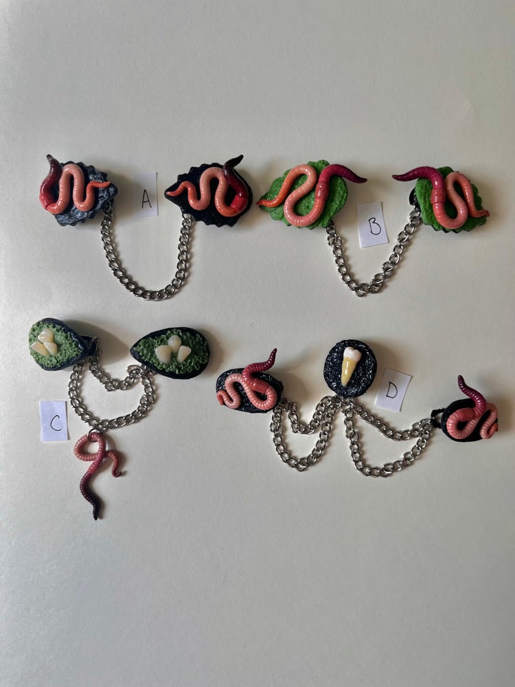 Each is hand sculpted from flexible polymer clay. The teeth are resin.